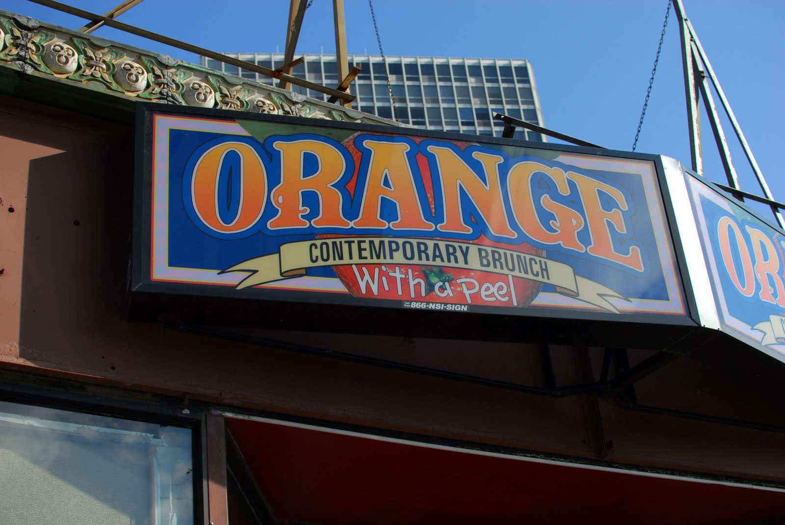 Orange proved to be a pleasant surprise for Our Ladies, who had expected to be let down by the buildup. With juice, Frushi, main course, and tip the total bill per Lady still came out to less than $20. Their only advice; find a willing party with a high boredom tolerance to do the waiting. Brandy would like it pointed out that she can be hired for this work for the price of a trip to the mimosa bar.