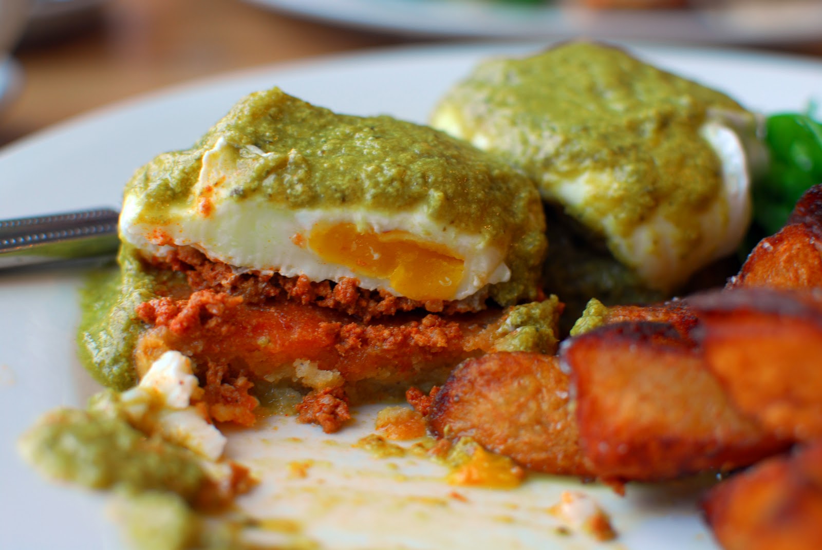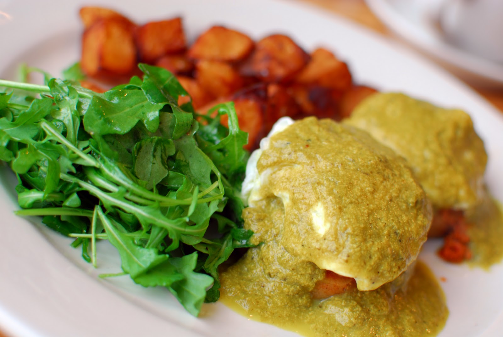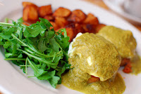 Bunny’s Nanadict was more closely related to Huevos Rancheros than a traditional Benedict, but she found it refreshing. Covered in chimichuri sauce, the brilliantly poached eggs rested on a zesty corn cake and were accompanied by some equally peppery potatoes. Rich, well portioned, and unique, the Nanadict gets the stamp of approval from Bunny, Pros. Emeritus of Eggs Benedict.