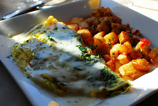 Bunny’s crab Benedict was a vast improvement over Ann Sather’s. Real crab meat mixed with wonderful spices and served traditional style over Canadian bacon and an English muffin, Bunny was very happy indeed. The Hollandaise, she reported, was vaguely sweet, but very light and not overpowering to the rest of the dish.