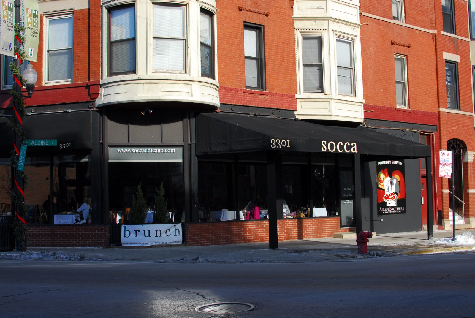 After a short drive, Our Ladies and guests noticed a banner on the corner of Aldine and Clark proclaiming “Brunch!” and decided it was worth investigating. After Mr. Bacon had secured the perimeter, Our Party entered Socca, a Mediterranean inspired bistro, that has only very recently begun serving brunch. The unassuming entrance leads one past a rustic, dark wood bar, the open kitchen, around the corner to the hostess stand, and finally into a wide open sunny room. Our Ladies were frankly shocked to see such an elegant room with almost no one in it, especially considering the improbable wait time that was given at their previous stop.