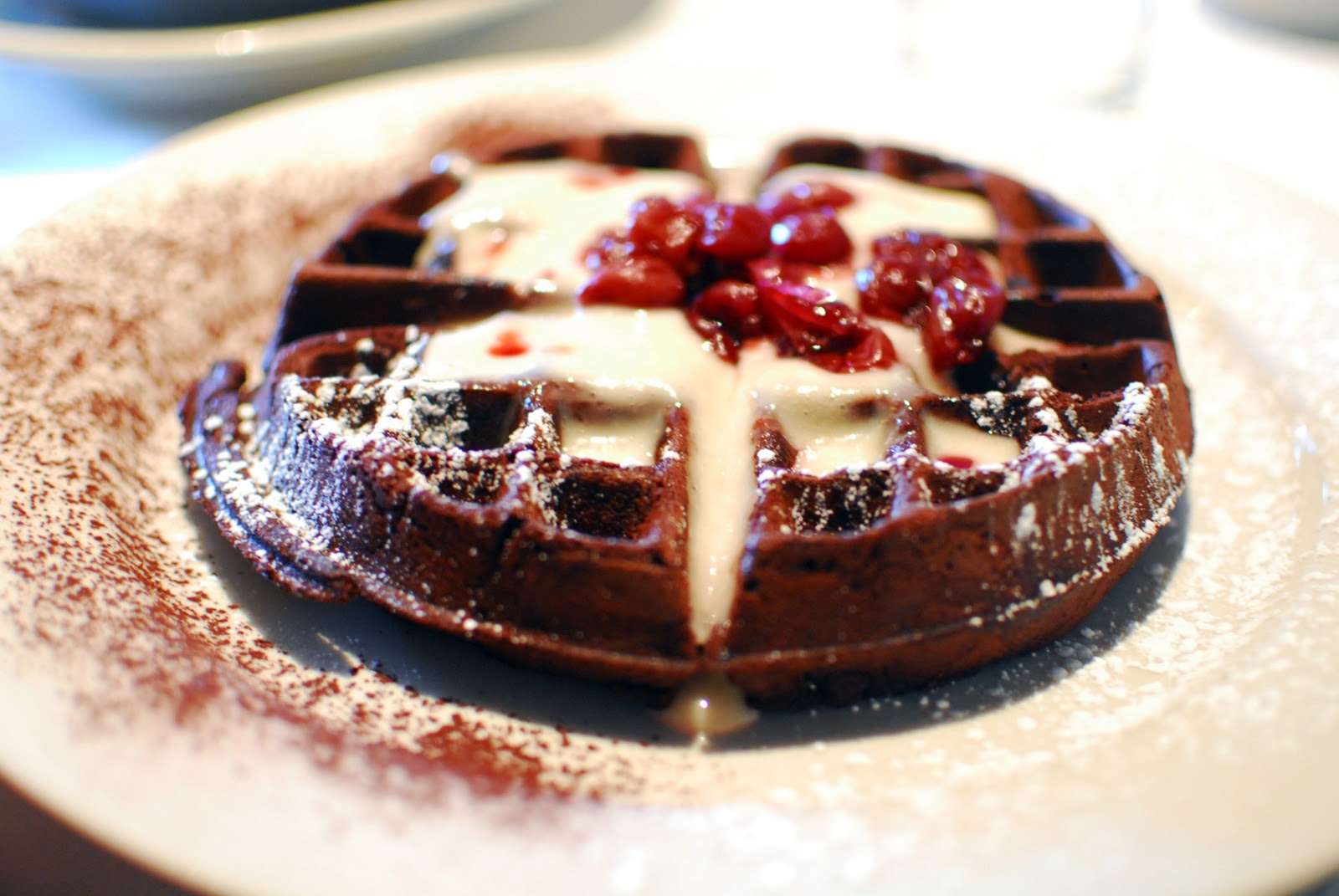 Brandy too opted for a waffle, but of a much different sort. The Chocolate Cherry Waffle turned out to be just what Brandy needed to lull her into a state of utter comfort. Not too dense, but bursting with chocolaty goodness, this was the ultimate sweet indulgence. The sour cherries on top helped to break up the richness of it all. As a side (and so she could delude herself into thinking she was ordering something healthy) Brandy also requested the Spiced Apple Couscous. The dish was warm an soothing, hearty but not heavy, and a very unusual alternative to traditional oatmeal.
