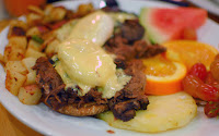 Bunny’s Benedict (the food, not the husband) was probably the most unique Benedict (the food, not the husband) she has had yet. The eggs were a little over done and there wasn’t enough hollandaise, but the pot roast was tender and comforting. The potatoes on the side were a tasty surprise; very well seasoned, and in a very good sort of way, inconstantly salty from piece to piece.