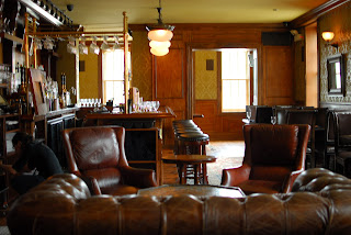 Obviously knowing they had VIP's on their hands, Bunny and Brandy were taken up stairs to a beautiful dining room, set with plenty of dark woods, flocked wall paper, leather backs arm chairs, and a fire place. An impressive show, to be sure, only made more impressive once they were told that the owners had designed the place themselves. "Reminds me of Noel Coward's drawing room," Brandy mused. "No, no, you're thinking of Cole Porter's den, dear," Bunny corrected her.