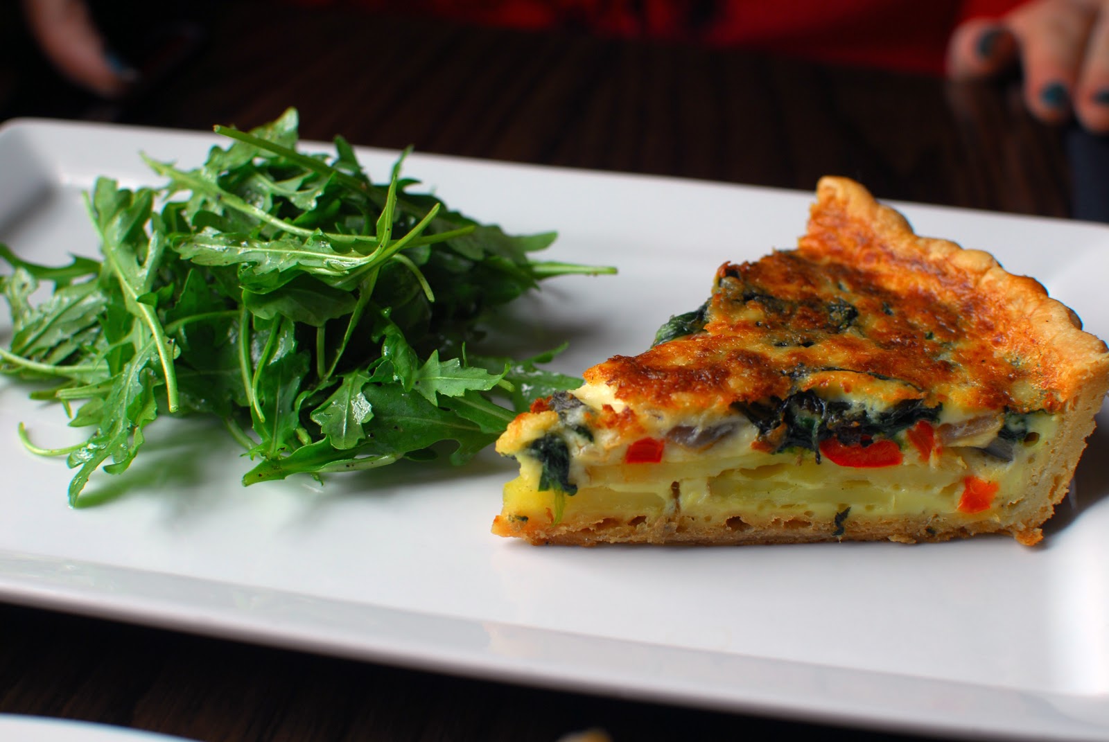 Brandy decided upon the seasonal quiche as her entree, which came dotted with Yukon gold potato slices, spinach, red pepper, and cheddar. The filling was very light and the crust was delicious and buttery. Brandy had at first regretted her choice and wished she had ordered something more British, but the addition of the potatoes somehow brought the flavors home to Old Blighty. The side salad however was disappointingly plain, only being a tangle of greens with dressing. Brandy felt that even a sliced cherry tomato and a few slivers of cheese might have made it a little more enjoyable.