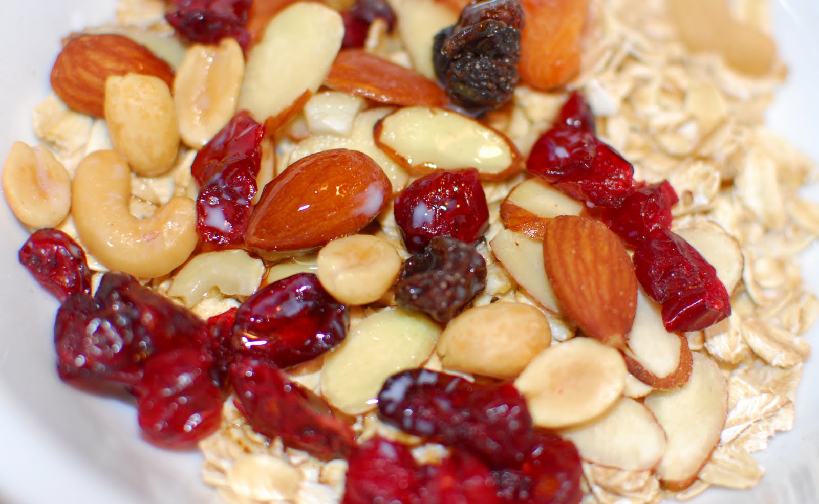 5 cups of assorted dried fruits, nuts, and seeds (such as walnuts, apricots, raisins, sunflower seeds, or use your favorite trail mix)