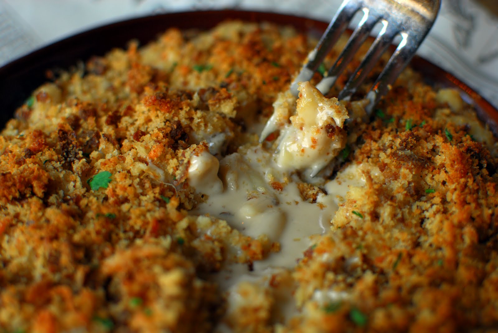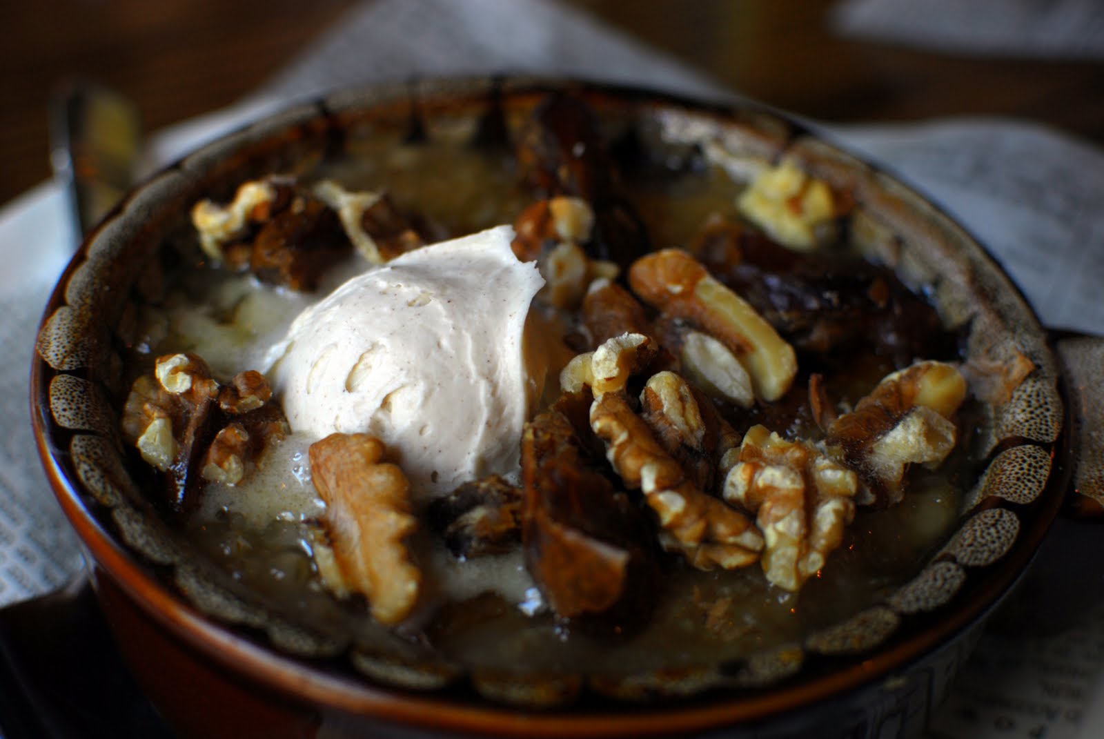 Brandy got two small dishes, as is her fashion: the Guinness Mac and Cheese (yes, dear reader, your eyes do not deceive you) and the Sticky Toffee Pudding Oatmeal Brulee. The mac and cheese had a lovely buttery crumble on top, and the interior was a little soupy, but very creamy and rich, being helped along by the creamy stout. The oatmeal took a little while to cool to an edible temperature, but once consumed was a wonderful mix of textures from the crunchy brulee top and the candied walnuts to the melted spiced butter and delicately cooked oats.
