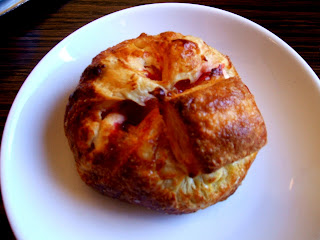 To start, Brandy ordered a raspberry Danish, which she was delighted to see came to the table hot. Though the pastry was buttery and flaky, she was dismayed to see a severe lack of jam in the confection.