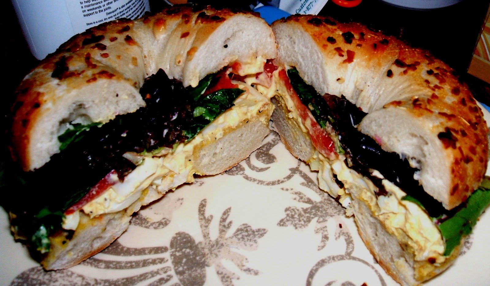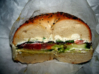 First was the Breakfast II, a combo of bacon, egg, cream cheese, and avocado on what was referred to as a "Mish Mosh" bagel (Brandy supposed this was their equivalent of an "Everything" bagel). Although the bagel had a lovely chew that can only be produced through the proper technique of partially cooking the bagel in boiling water, Brandy was disappointed that, although the menu had stated the bagel would be toasted, it was quite cold. She also thought that the combo of the creamy avocado and cream cheese was a bit overkill, and she wished for a crisper veggie, such as a nice leaf of ice berg lettuce, to add a bit of crunch. Other than that, she found the whole thing to be a rather nice combo of traditional breakfast flavors.