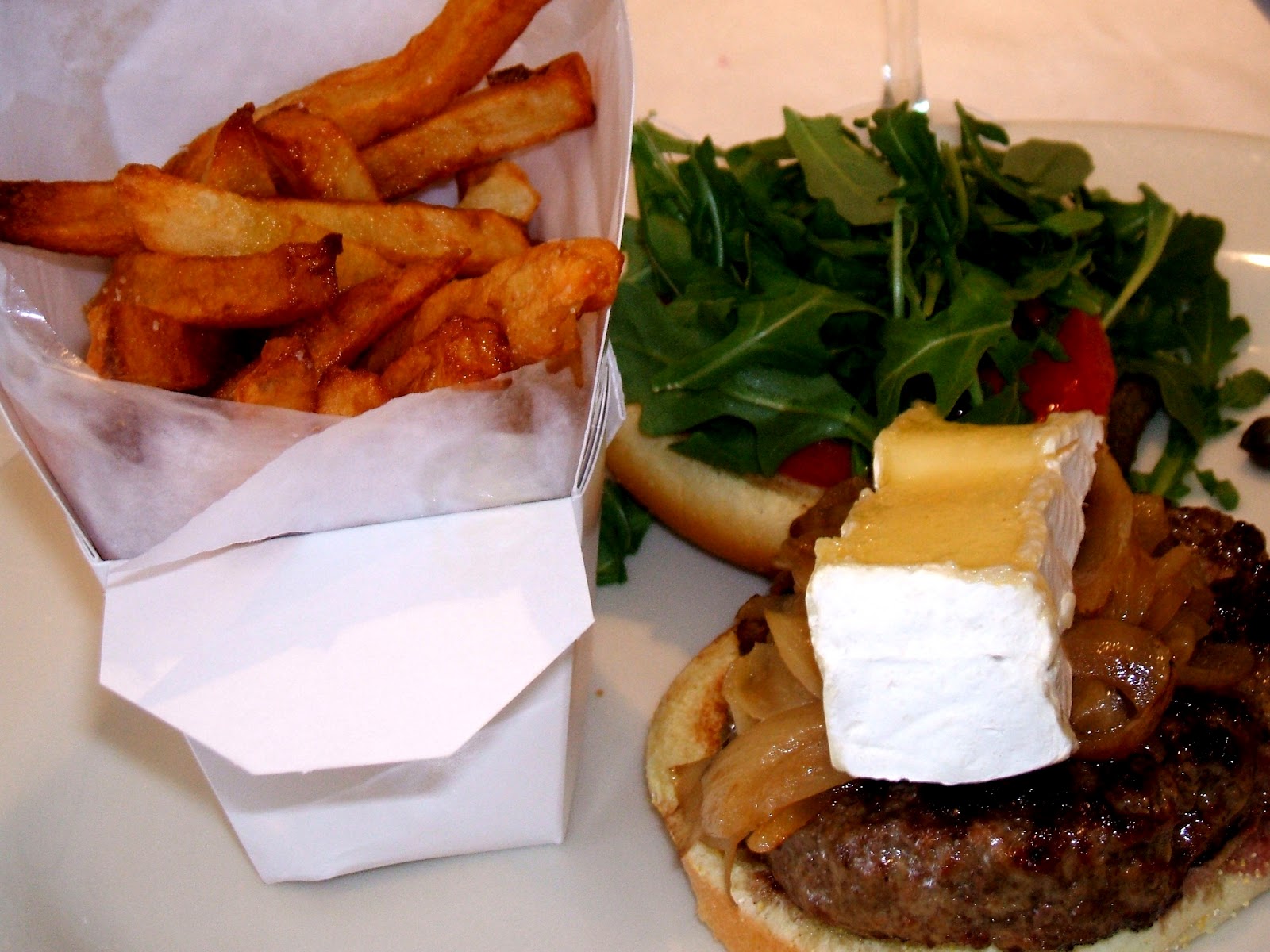 Brandy had chosen the substantial Wagyu Beef Burger with Truffle Fries. Rather sweetly, the fries were actually "truffled" tableside by the waiter, who poured just a little touch of truffle oil over them. The fries were actually quite crisp and fragrant, though Brandy would have loved some means of transporting the truffle all the way down to the bottom of the paper container that held them. The burger itself was so thick and juicy that Brandy could barely get her mouth around it, and after a few bites, the bun ceased to be a viable means of fluid free transport. Brandy very much enjoyed the peppery arugula, caramelized onions, and wedge of brie that came atop the burger, though she thought the four pots of sauce (horseradish, mustard, ketchup, and BBQ) that came on the side were a bit over kill, especially for such high quality beef.