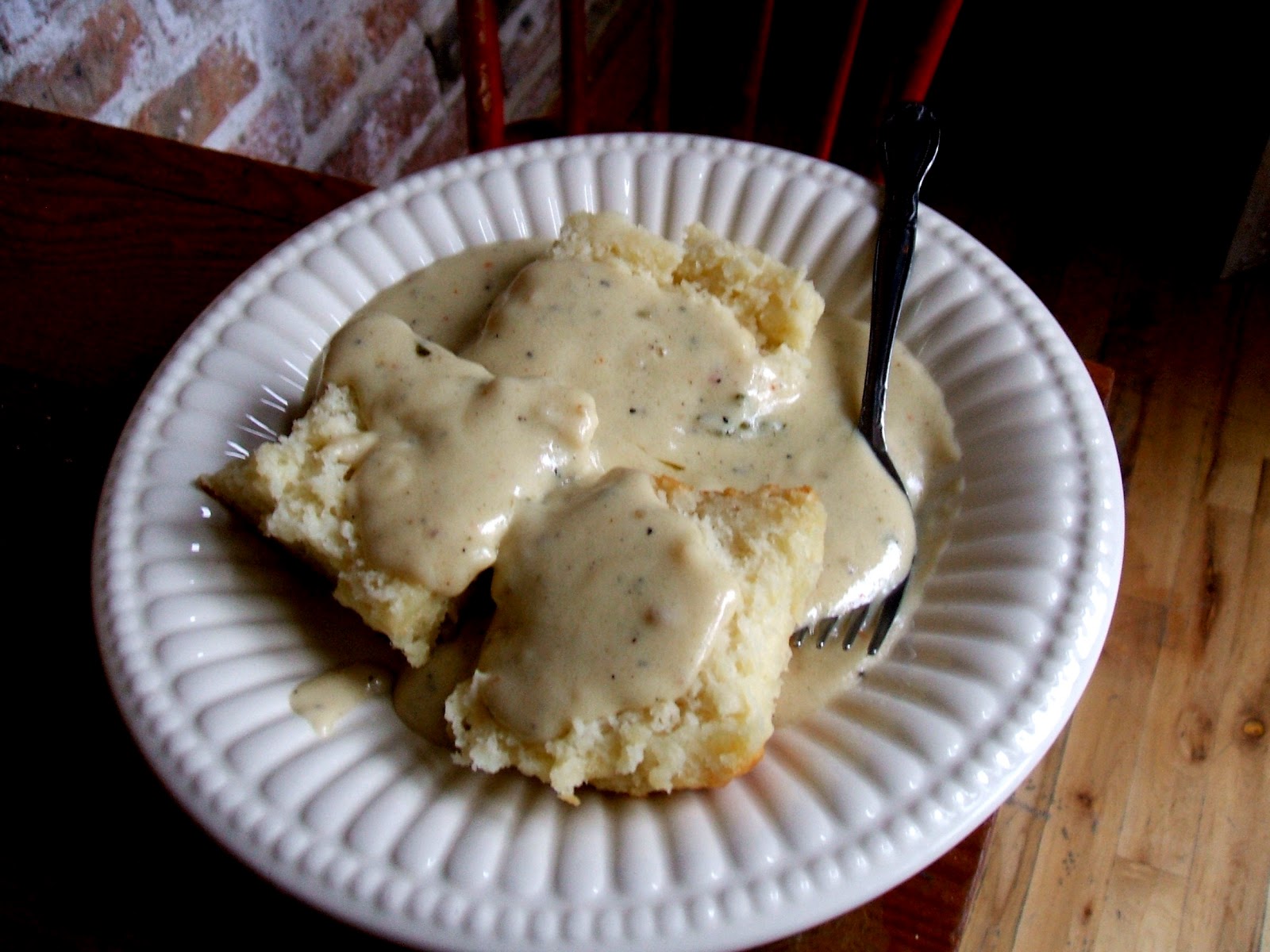 Starting out with their biscuits, Brandy and Biscuit found them to be buttery, light, and just a little bit crumbly. Biscuit loved the creamy gravy that topped hers, which was spiked with bits of sausage. Brandy had loaded her biscuit with Black Pepper Honey Butter and Blueberry Lavender Jam. The pop of the berries was just perfect and floral jam was lovely and subtle. "Well, at least the biscuits are legitimate brunch food," Biscuit mumbled cheerily through a mouthful of gravy. "Anything I eat at 11:00 in the morning on a weekend is legitimately brunch," Brandy said seriously, "Whether its a cheeseburger, a crumpet, or a pint of ice cream. It's a state of mind, dear, not the state of your plate."