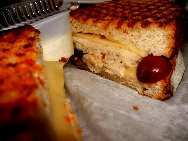 Boudin chose the Gatsby, a refined combination of chicken, cheese, tomato, and pesto. He found the bread to be crispy, fresh, and buttery, while the chicken on the inside was tender. The pesto seemed to be dominating flavor in this particular sandwich.