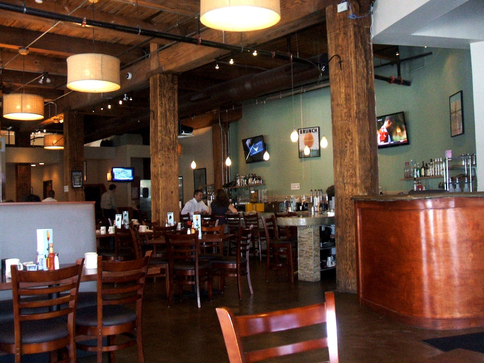But one fateful day while wandering around the River North area, Brandy came across a large building strewn with banners proclaiming, "Brunch!" Of course, she was intrigued and poked her head in. Inside was a large, open space with a long counter on one end, and high wood beam ceilings. The overall effect was one of a quirky diner mixed with a comfortable lodge.