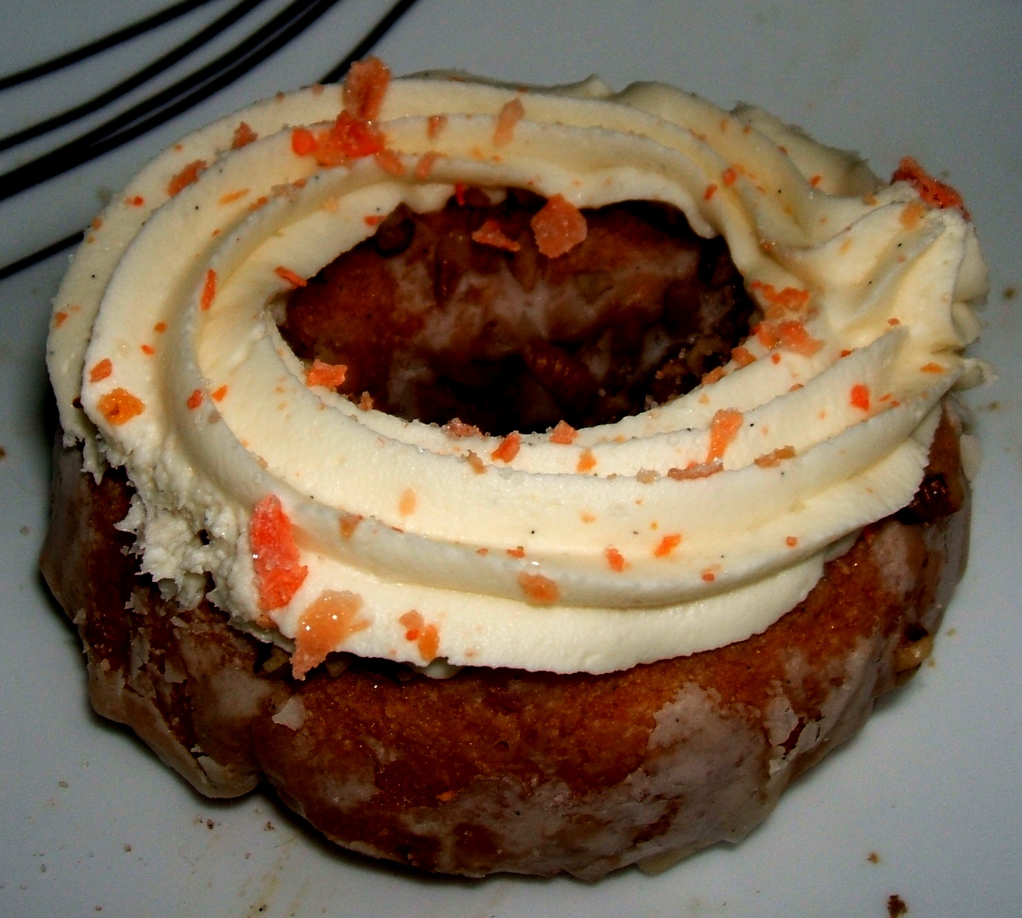 Next was the Carrot Cake. This one consisted of a spiced cake, topped off with a cream cheese frosting, walnuts, and candied pieces of carrots. Brandy had never had candied carrots before, but she rather liked these ones, and especially loved the thick and creamy frosting that topped the dense cake.