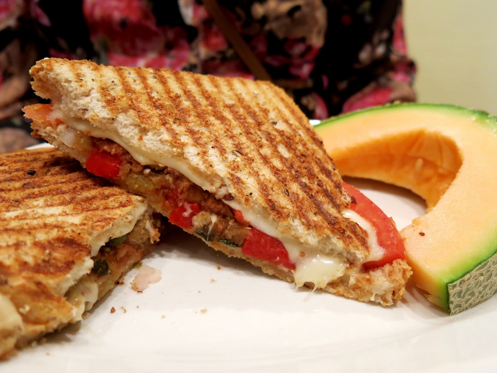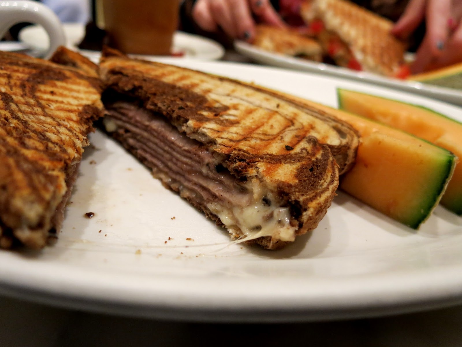 The sandwiches arrived shortly after. Baranina had picked the Moroccan Panini, which consisted of some grilled eggplant, sweet basil, tomato, and Swiss cheese. All in all, the sandwich was pretty flavorful though the veggies caused it to get soggy very quickly, even though it had been toasted. Baranina had to resort to a fork and knife towards the end.