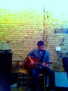 Under the Table was started by childhood friends Max Mora, Anthony Scardino, and Chikoo Patel with the idea of putting a modernist twist on traditional fine dining. The event was attended by about 15 other patrons and hosted in a small space at 1307 Chicago Ave. Though the room wasn't customizable to the owner's liking (there wasn't much to do about the art that had been bolted to the walls or the painfully eclectic chandelier), the atmosphere was set by use of a very talented jazz guitarist, providing live music all throughout the dinner.