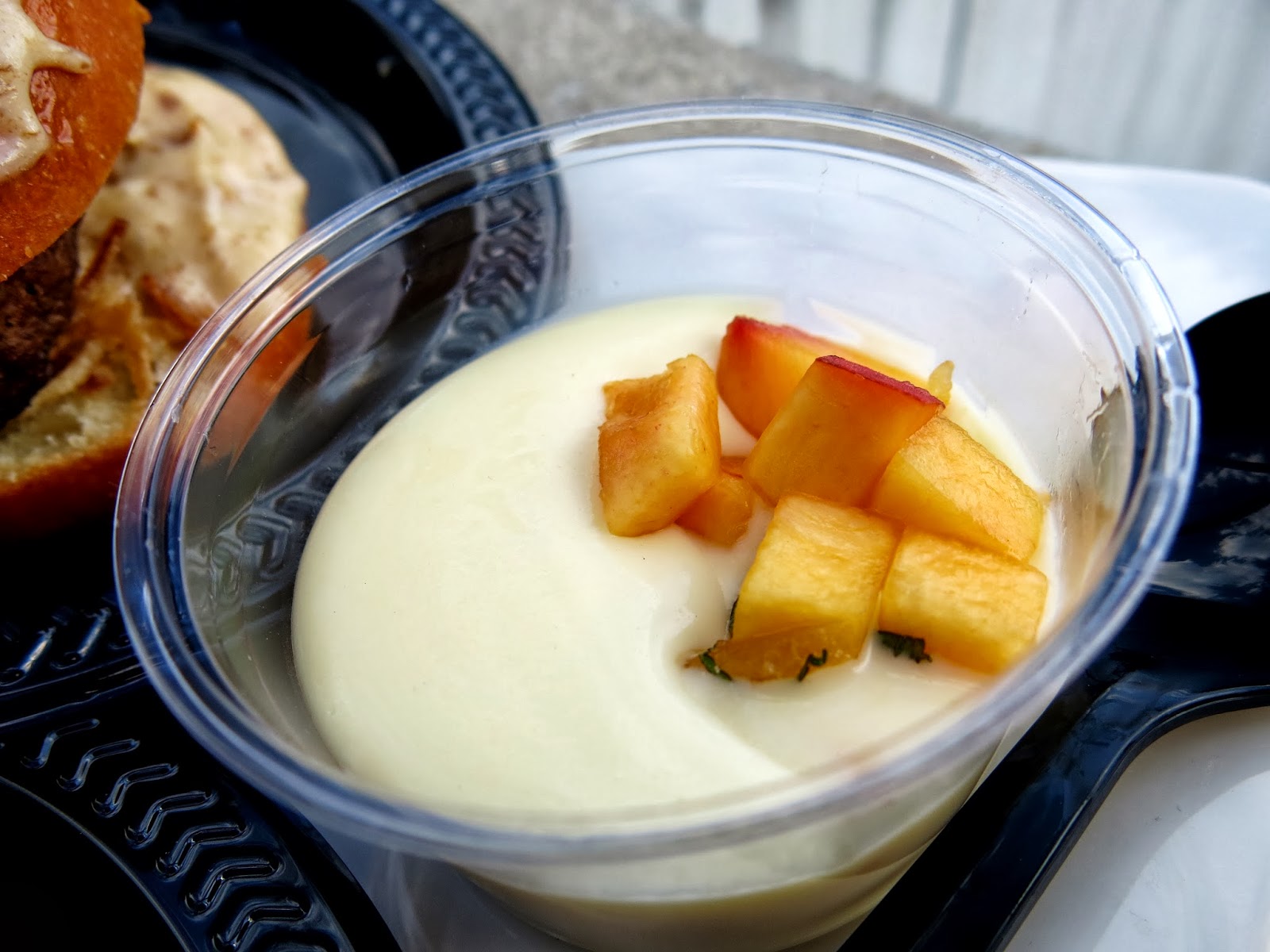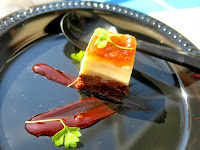New to the festivals this year were the Dessert Tasting Pavillion and the La Femme du Chef Pavillion, both of which specialized in showcasing two previously under represented groups: pastry chefs and female chefs. Black Dog Gelato brought a bold dish to the Dessert Pavillion: a Red Pepper Gelato Tart. Not being a huge fan of pepper flavor in general (Brandy nearly threw a cocktail in the face of a bar tender after sipping what she thought was a fruit punch only to find it spiked with red pepper juice) Brandy still had to admire their adventurous spirit. Sixteen from the Trump Hotel presented three impressive variations of a rootbeer float, one of which was an airy liquorice scented cake. Over at the La Femme tent, Brandy's perennial favorite Amanda Downing from Rockit Bar and Grill brought a Brie Burger with caramelized onions, but the true standout was Megan Neubeck from Terzo Piano at the Art Institute of Chicago with a mind boggling Sweet Corn Panna Cotta with Peach, Ginger, and Mint.