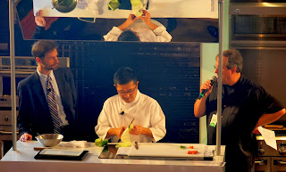 After her gullet was thoroughly stuffed, Brandy settled in for a couple of cooking demos. First up was Brandy's old friend, Chef Takashi Yagihashi, and fresh off the plane from Japan Chef Hideaki Matsuo, who teamed up for an enlightening demonstration of traditional Japanese cooking techniques. Takashi was his usual witty self, getting the crowd to giggle by just flashing them an excellently timed grin, while Chef Matsuo flashed his amazing knife skills, like making one continuous ribbon from a chunk of cucumber. After that, Sarah Moulton and Gale Gand took the stage to talk about what they learned from the great Julia Child. "What she always told me was, 'Eat everything in moderation,'" Chef Gand explained, causing Chef Moulton to counter, "But what she meant was eat everything in moderation!" If there is a better motto for the Chicago Gourmet festival than that, we'd like to hear it!