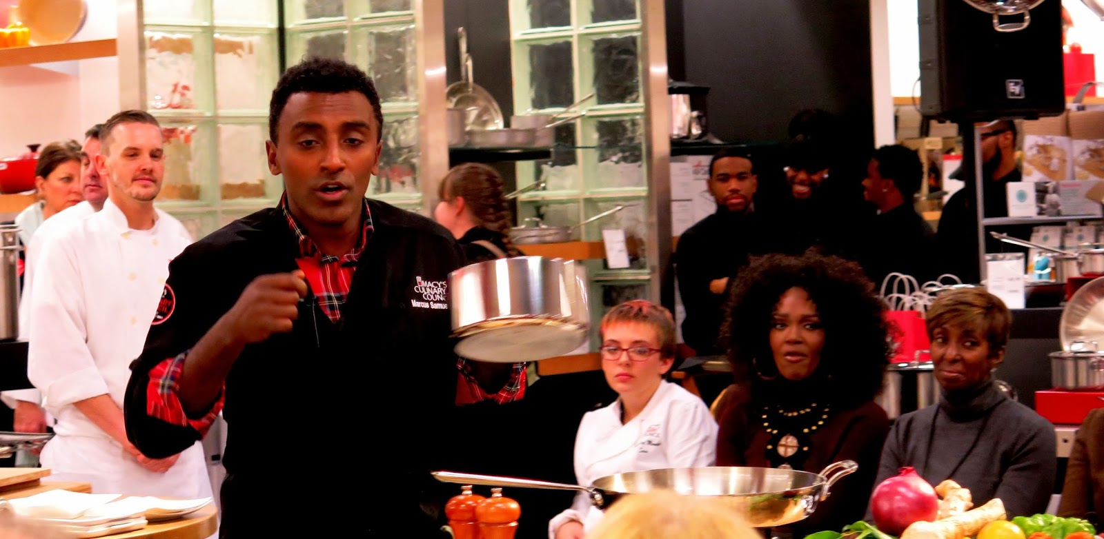Not knowing enough about Swedish home cooking to make a convincing meal (and not wanting to trek all the way out to the IKEA in Schaumburg for some frozen meatballs), Brandy did a little bit of research and quickly found out that world famous chef, Top Chef Master, Macy's Culinary Council member, and nice judge on Food Network's Chopped Marcus Samuelsson was giving a demo at Macy's on State Street. Though Marcus was Ethiopian born, he was actually raised by a Swedish family, making his culinary perspective particularly unique.