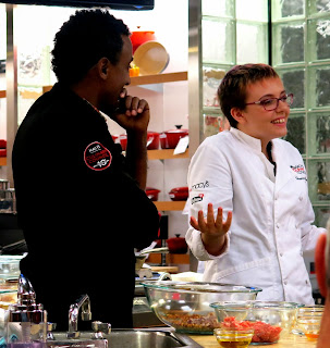 Next up was his grandmother's recipe for Meatballs. which he suggested serving with a carrot and apple mash. These meatballs were not what Brandy expected at all, as Chef Samuelsson coated them in a sweet barbecue sauce instead of gravy, which matched well with the sweet mash. "You can make mash out of any root vegetables for a nice change of pace," he instructed, "Don't give potatoes all the attention."