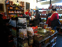 Knowing how down Brandy gets this time of year, her good friend Mama Bee, owner and operator of Honey Bee Bakery, decided to do something about her gloomy attitude. Luckily, as the well connected honey baron she is, Mama Bee came across a little grocery in Lakeview called Spencer's Jolly Posh Foods, which specializes in English and Irish goodies (she also knew that Brandy had become a bit fan of their British style sausages and bacon via one of the many stalls they maintain at local farmer's markets). A little more investigating turned up the fact that Spencer's actually houses a tiny cafe, from which they serve sandwiches, desserts, and best of all, a traditionally British cream tea service. "This is just the thing to take the Briney out of that old Brit and put a little sweetness in her Saxon!" Mama Bee exclaimed.