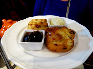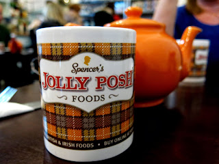 The cream tea started off with a pot of tea, naturally. Brandy and Mama Bee picked the Winter Spice, a warm and slightly orange scented tea which came served in an adorable orange ceramic pot and two officially branded Spencer's Jolly Posh Foods mugs. "Well now, I'd thought we'd be getting a porcelain pot and dainty teacups and saucers!" Mama Bee said in slight surprise. "Don't be silly, dear. This isn't a high tea, its a cream tea. Much more casual," Brandy retorted, "We're not in an episode of Downton Abbey. Now, one lump or two?"