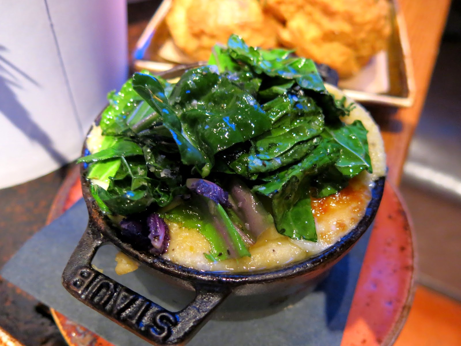 As a side dish, the ladies shared an order of Creamy Grits with wilted kale and parmesan cheese. The grits were very smooth and light with a nice nuttiness from the cheese. Brandy very much appreciated the addition of the kale, which added a bit of bitterness to break up the creaminess, though she almost reached for a little bit of the bacon in Bailey's skewer to dip into the pot.