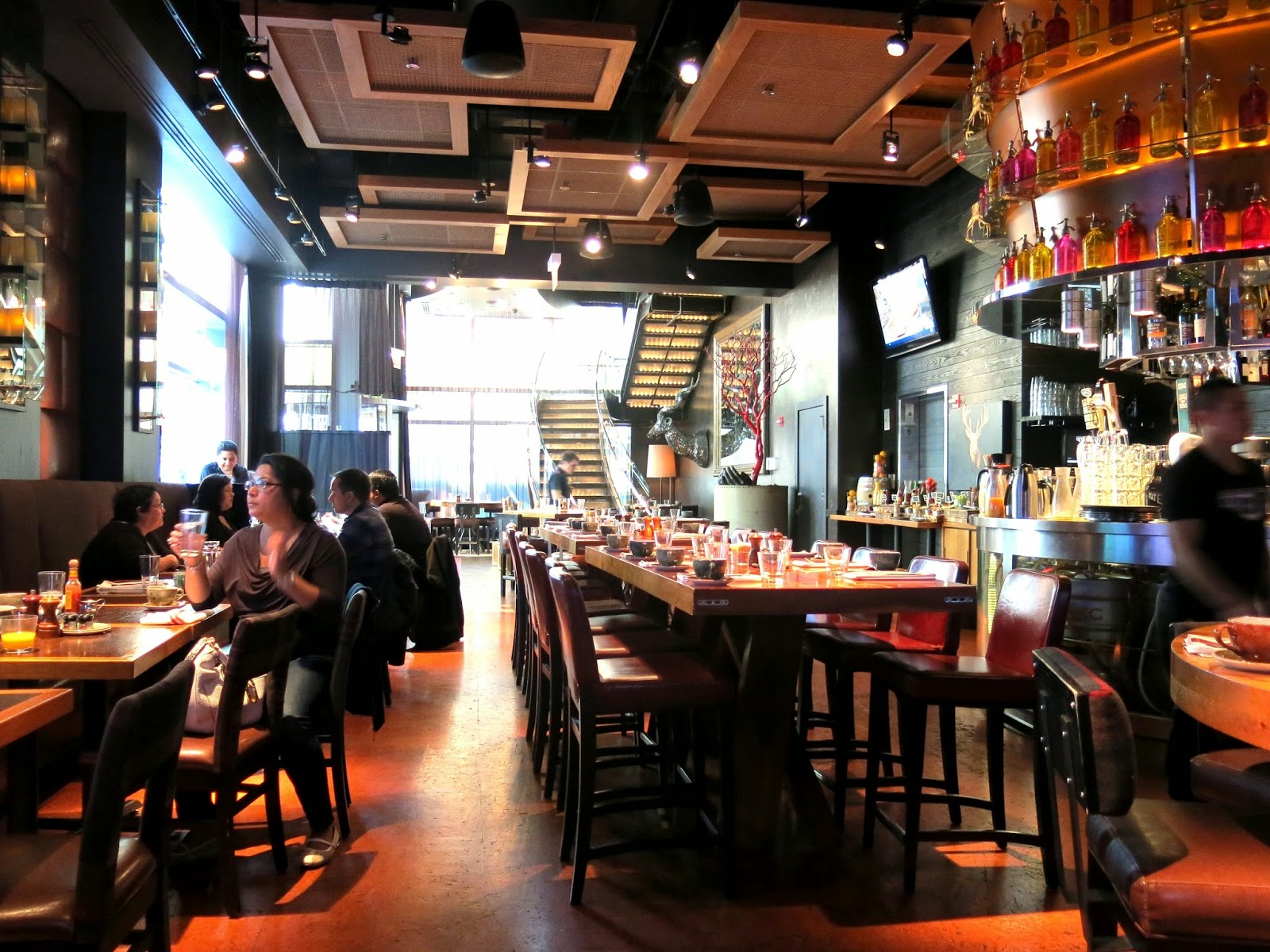 State and Lake had nice touches of color, light, and elegance that made one feel all at once comfortable and pampered. The woods were warm and rich, the bar sparkled from the yellow and orange bottles that surrounded it, and the whole space came off as rather cozy and welcoming. As they were taken to their table, Brandy made sure to situate herself to face a window out onto State Street so she could people watch, while Bailey focused in on a television for a good view of the Bear's game.