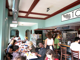 Township was a little small and narrow upon entering, giving off a friendly sort of old fashioned diner feel with mint green walls and minimal decoration. "I do like a good old fashioned neighborhood diner," Brandy smiled as they took their seats. She observed the counter off to one side of the space, set up with individual chairs as well as the open space behind the the dining area, where the restaurant could possibly expand into during busier hours or for events.