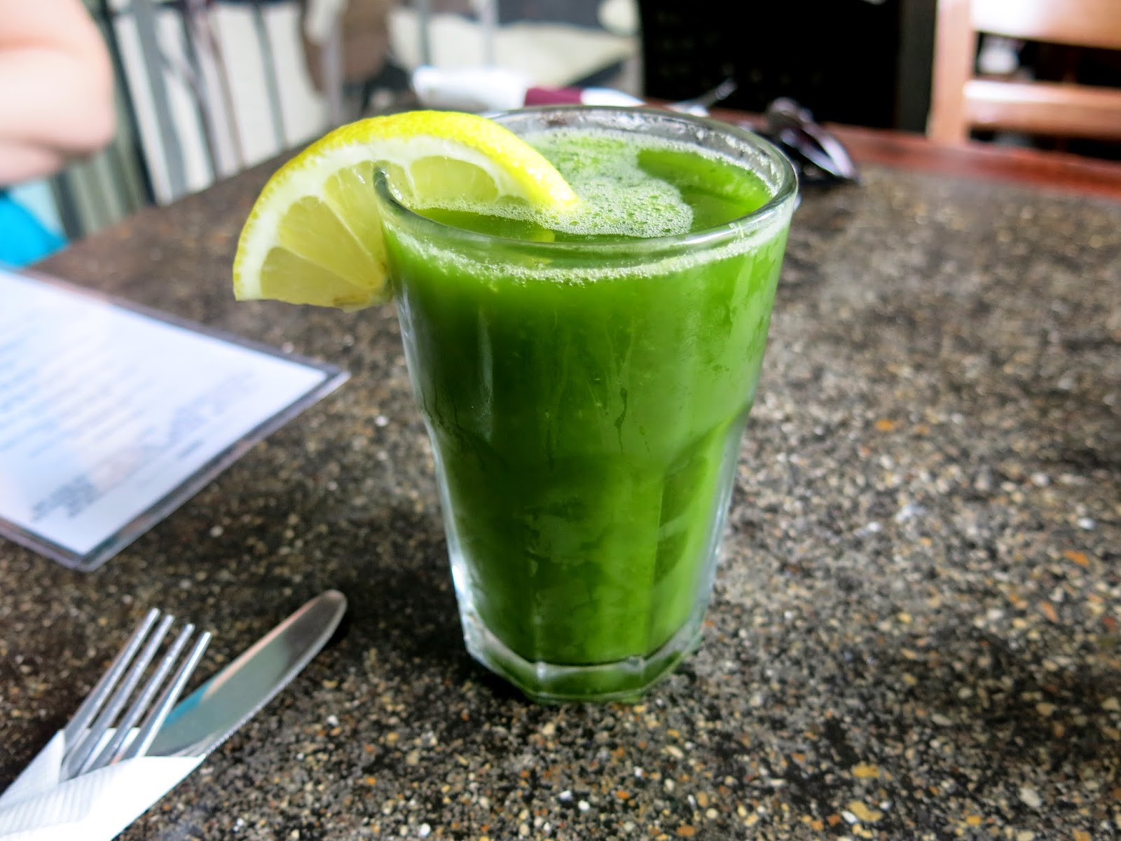 The two ladies both began with a glass of fresh Pineapple, Kale, and Celery juice. Brandy was slightly worried that the vegetables would over take the flavor, but was pleasantly surprised that the major flavor was indeed the pineapple. "I've come to have a great fondness for green juices in the last few years," Brandy explained, "I feel like if I have a nice healthy juice during a brunch it will help balance out the bacon and alcohol." "I don't think that's how it works," Bailey laughed.