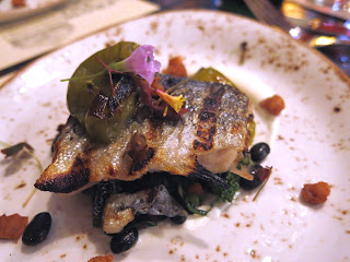 The fish course was a Grilled Rainbow Trout with tomatillos, bacon lardons, and black bean relish. The skin of the fish was delightfully crunchy, while the meat was tender, flaky, and absolutely perfect. The beans had a little bit of bite to them, cut with the soft acidic tomatillos, and finished off with some fresh herbs from the rooftop garden. The bacon actually seemed to be gilding on the lily and Brandy could have easily enjoyed the dish without it. Revolution Brewery's Rosa was the accompaniment to this dish, a beer that Brandy had already had and grown quite fond of for its floral notes and smooth sipability.
