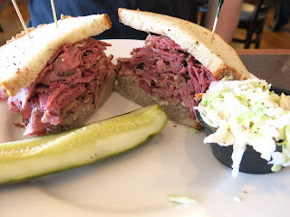 Hawk decided on the Grandpa's Favorite, with consisted of corned beef, pastrami, and chopped liver on rye bread with a side of cole slaw and a pickle. The beef was perfectly spiced and melt-in-your-mouth tender, which Hawk really admired. The liver was maybe a tad overwhelming in competition with the other meats, but it ultimately fit in quite nicely. "Does liking this sandwich mean that I'm now officially an old man?" Hawk wondered. "No, it means your tastes have finally reached full maturity," Brandy corrected him.