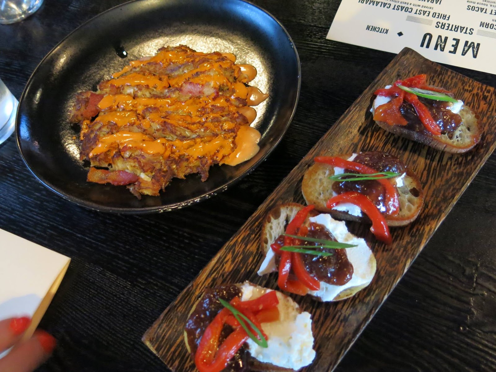 The true star of the new menu was the burgers and sandwiches. The Stout Style Reuben with its beer braised corn beef and spicy giardiniera was the perfect update to a classic, in Mama Bee's opinion, but Bunny was paying far more attention to the burgers. The 12 Hours 55 Minutes Burger (so named for the time a flight from Chicago to Tokyo would take) was another Japanese themed delight with pickled cabbage, green onion, and some sharp bleu cheese, while the Barcelona Night Burger added spicy ground chorizo and Manchego cheese for some Spanish flair. Mama Bee's favorite of the night was with French Quarter Burger with roasted corn relish, creole spiced aioli, jalapeno jack cheese, and andouille sausage, which made for a slow burn spice that she really enjoyed. Bunny, on the other hand, favored the Wild Forest Burger with plenty of mushrooms, creamy goat cheese, and a touch of truffle oil.