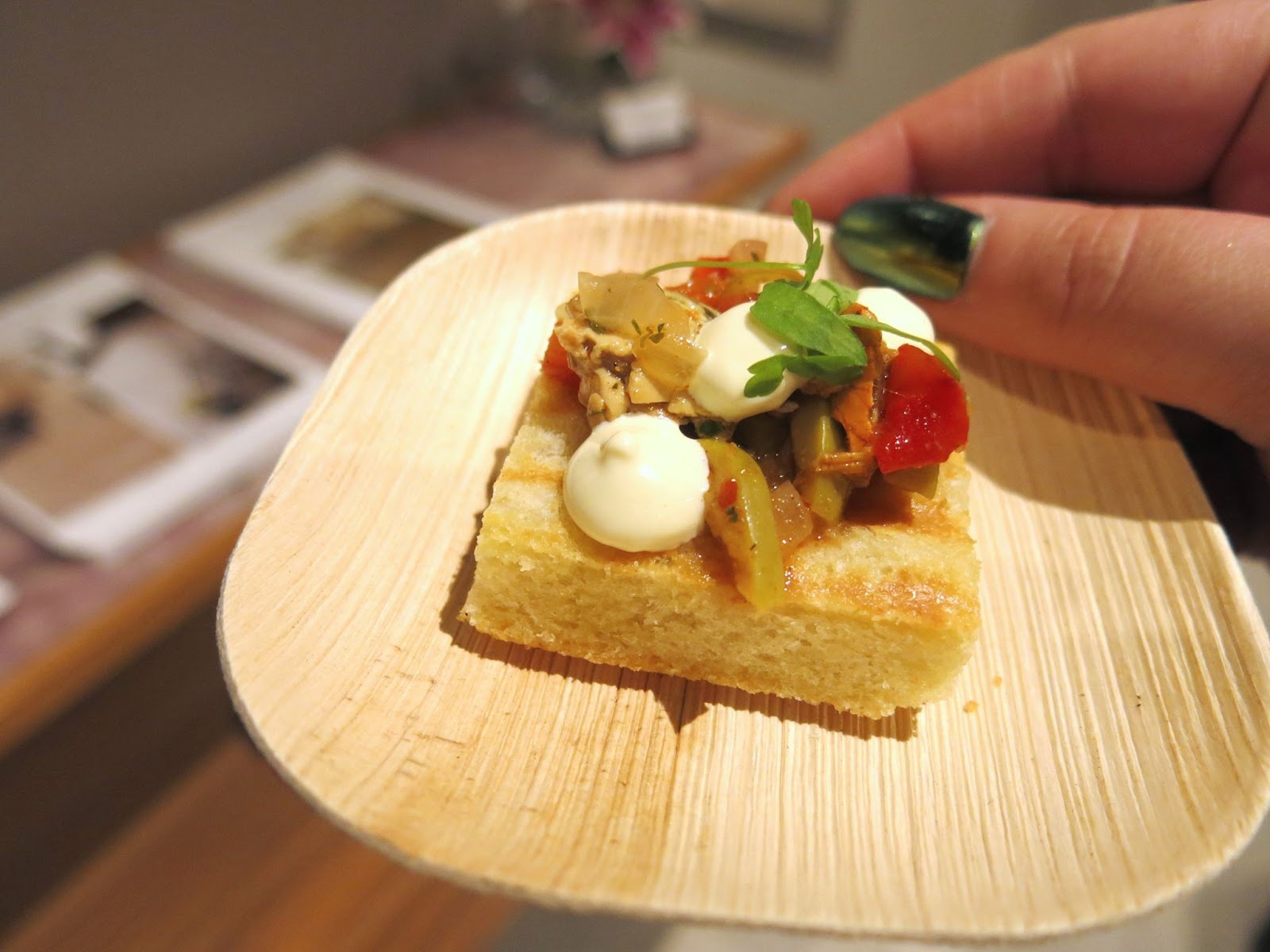 The desserts were also plentiful this year, possibly even more so than the previous year. One entire section of the floor had been strictly devoted to the sweet stuff, welcoming attendees into the fray with one of the aforementioned silver clad ladies, offering up cupcakes and truffles from her table-like-skirt. Firecakes proudly presented a line of classic donuts for the crowd and Le Pain Quotidien offered up some lemon blueberry tarts and scrumptious coconut macaroons. Beatrix had their Oh My! Caramel Pie in tiny adorable slices, while Ada street played it simple with a smear of chocolate ganache on some fresh crostini with a sprinkle of sea salt and a drizzle of olive oil on top.