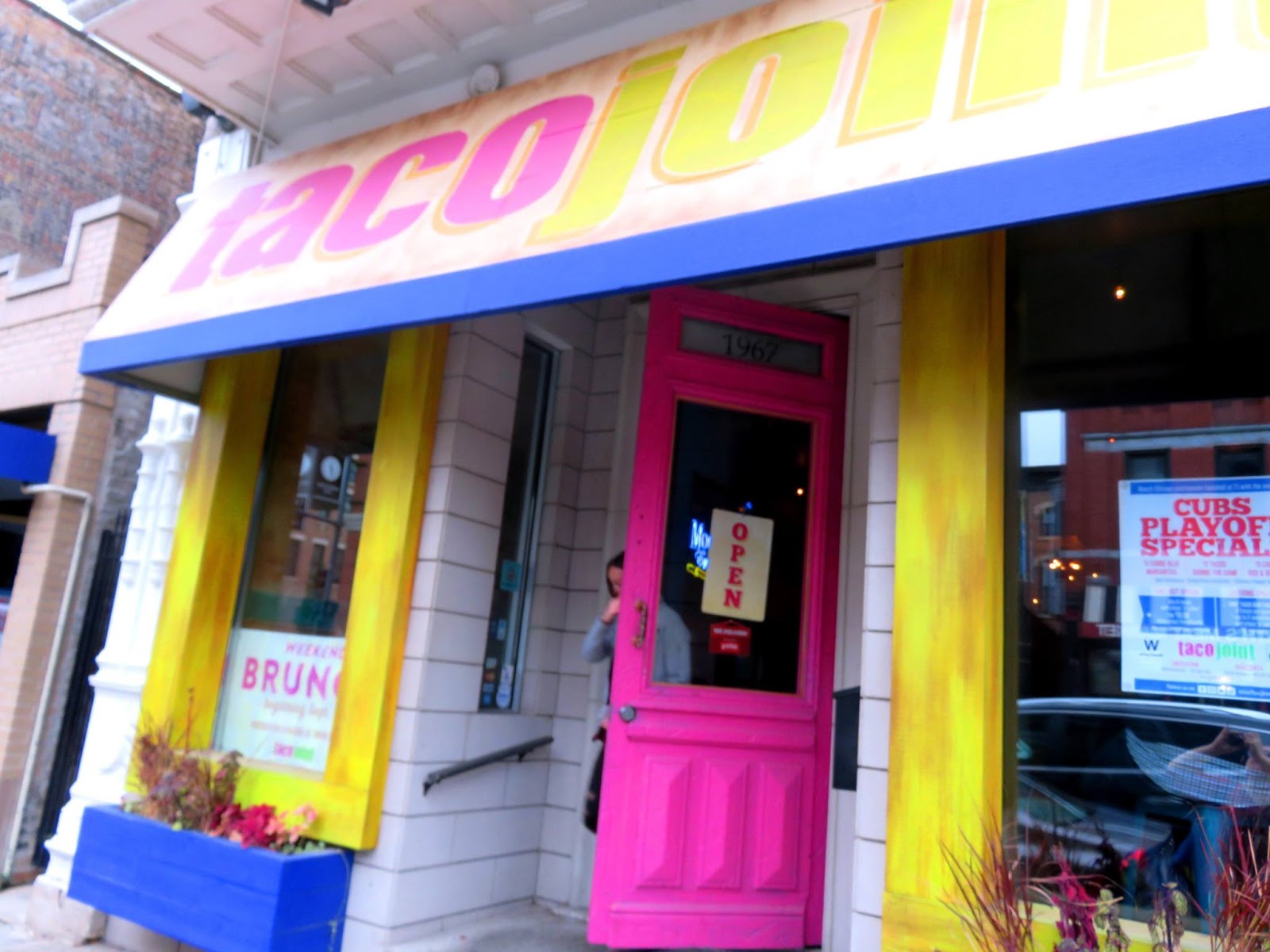 Oh, the ever present bottomless brunch. Chicago seems to be enamored with the practice, but Brandy's not entirely convinced it's a good idea. "Obviously, I'm hardly opposed to a cocktail or two at brunch, but do they really need to be bottomless?" she's been known to question, "If the deal works out in my favor, of course I'm happy to continuously sip until my heart's content, but that isn't always the case."Hearing that Taco Joint in Lincoln Park was hosting one such bottomless brunch, Brandy decided to examine this phenomenon a little more closely, accompanied by her good friend Starr. The brunch was housed in the space that was The Mexican, where Bunny once had occasion to stop in for a delightful dinner. The decor hadn't changed much from a year ago, with the same bright pops of color and exposed brick, but the vibe had transition from rustic to more cool and relaxed, with the traditional tables having been replaced by high tops, stools, and communal seating.