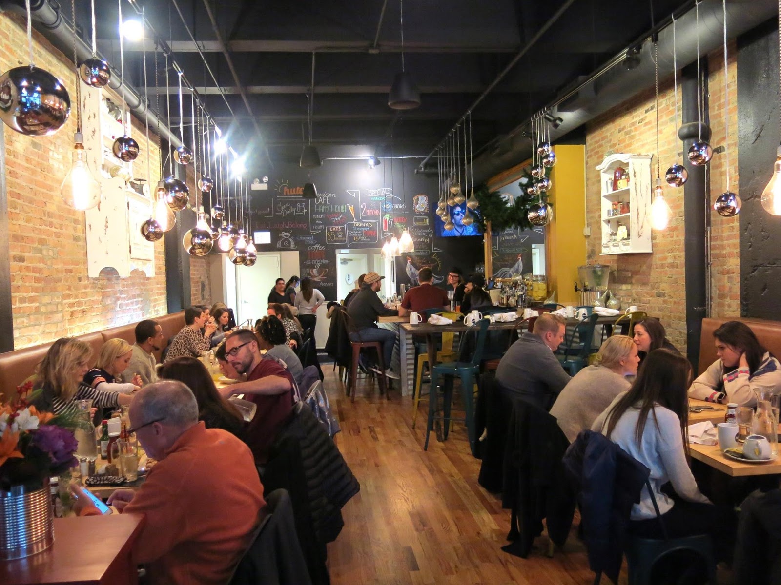 Brandy had decided to visit the city's newest brunch themed restaurant, Hutch American Cafe, an extension of the popular Lakeview spot that started life as one of Brandy's very first brunch favorites. Entirely brunch-centric restaurants have been problematic for Brandy in the past, as they seem to put so much concentration of creating large, all inclusive menus, that uniqueness and seasonality tend to get pushed aside. "The most successful brunch menus I've seen have always been rather small, flexible, and creative without being unapproachable," says Brandy, "Trying to please too many people all at once can sometimes compromise the experience as a whole. I'd rather see a restaurant's personality shine through with some unexpected options rather than be overloaded with old standbys.""Uber app not working, so going to drive myself. Be there ASAP!" texted Bernais just as Brandy arrived at Hutch. Seeing that the place was already buzzing, she decided to head inside and snag a table rather than stand out in the snow. True to its homey, Americana theme, the inside of Hutch was warm and eclectic, with various nicknacks hanging from the walls and ceilings, exposed brick walls, and a hodgepodge of metal and wooden furniture. Though a little cramped and a little loud, Brandy found the atmosphere actually quite cozy, so much so that she couldn't help but make friends with the tables beside her (the menus even encouraged conversation with strangers).