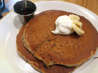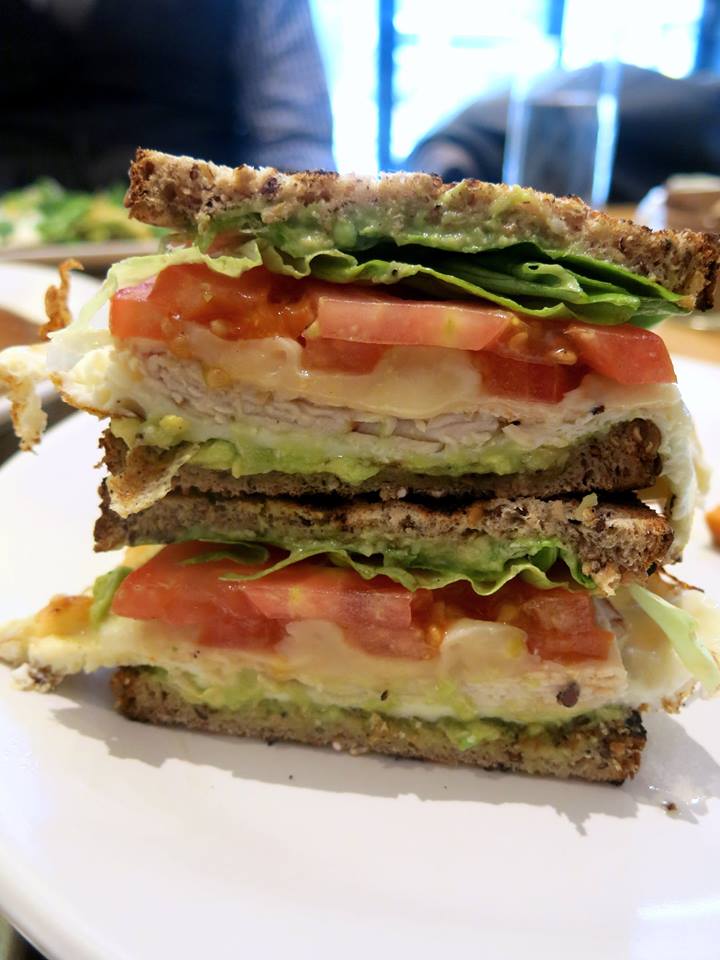 For his entree, Brocco decided to go for the oh so fashionable Smashed Avocado Toast. "I've seen these things all over Instagram, but I've never had one," he joyfully admitted to Brandy. He found the combination of the smooth avocado, the smoked gouda, the peppery arugula, and the toasty black sesame to be quite light and refreshing, but he found himself longing for a bit of starch on the side. Brocco decided to curb his craving for a little something more with an order of the Quinoa Johnny Cakes, which came dressed with sliced bananas, a dollop of greek yogurt, and some good old maple syrup. While the texture of the Johnny cakes was quite fluffy and soft, the quinoa added a nice bit of crunch to them. "They taste just like regular pancakes for the most part," said Brocco, "Which is why I wish they had a little something extra. You know, to really set them apart from your average run of the mill flapjacks."Brandy decided on the Organic Egg Sandwich, which consisted of manchego cheese, fresh tomato, roasted turkey, smashed avocado, along with an egg on a grilled seed bread, served with a side of sweet potato hash. Due to the slippery nature of some of the ingredients, the sandwich didn't quite hold together through the eating of it, which has long been a pet peeve of Brandy's, but the flavors were quite hearty, yet fresh. Brandy particularly loved the sweet potatoes on the side, which were a nice change of pace, having been prepared with some charred onions for an extra bit of flavor.