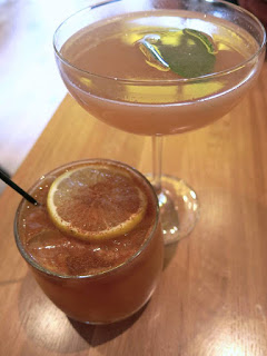 The cocktails were of great interest to Brandy and Brocco right off the bat, as they too had been formulated to be as nutritious as possible. Brocco favored the Thai Grapefruit Martini, a simple yet bright and smooth mix of vodka, grapefruit juice, and basil. Brandy went for the Autumn Orchard Sour, with apple juice, muddled pear, lemon zest, and mulled brandy, resulting in a nicely spiced cocktail that Brandy thought might have even been enjoyable hot. Not long after their drink order had been placed, Brandy suddenly realized there was something she had missed on the hot drinks side of the menu. "A Matcha Horchata?" she exclaimed. "Oh, I simply must try that! Those are two of my favorite things in the world!" She was rewarded with a frothy, spiced, silky hot cup of magical liquid that she actually enjoyed even more than the cocktail.