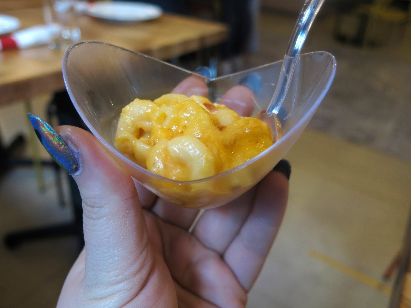 Next came some little bites of signature menu items. The Island Style Mac and Cheese was a thick and creamy concoction that didn't stray too far from the American classic, except that it had a bit of a red pepper kick. The Plantain Porridge was a bit more of a pleasant surprise with it's subtly sweet flavor, though it was closer to a smoothie texture than what Bunny was used to seeing in a porridge. Then there was a little taste of the Ackee and Saltfish which, as Bunny was told, was the national dish of Jamaica, consisting of the custard-like tropical fruit combined with buttery salted fish, sauted red and green peppers, onions, and a traditional Jamaica mixed of leafy greens called Calaloo. This was truly a new experience for Bunny, who was surprised to find that the ackee bared a striking resemblance (both physically and in flavor) to scrambled eggs!