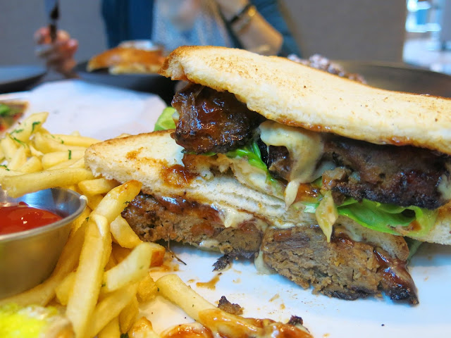 Brandy went with the Shortrib Meatloaf sandwich, which came served on Texas Toast with a side of fries. The texture of the meatloaf was very unique, being flaky and very tender. Brandy liked the slightly tangy sauce and thought it did a good job of adding flavor to the meat without over powering it. Her only complaint was that the sandwich as nearly impossible to pick up because the meat was too substantial for the flexible Texas Toast, and so could only be consumed with the use of a fork and knife.