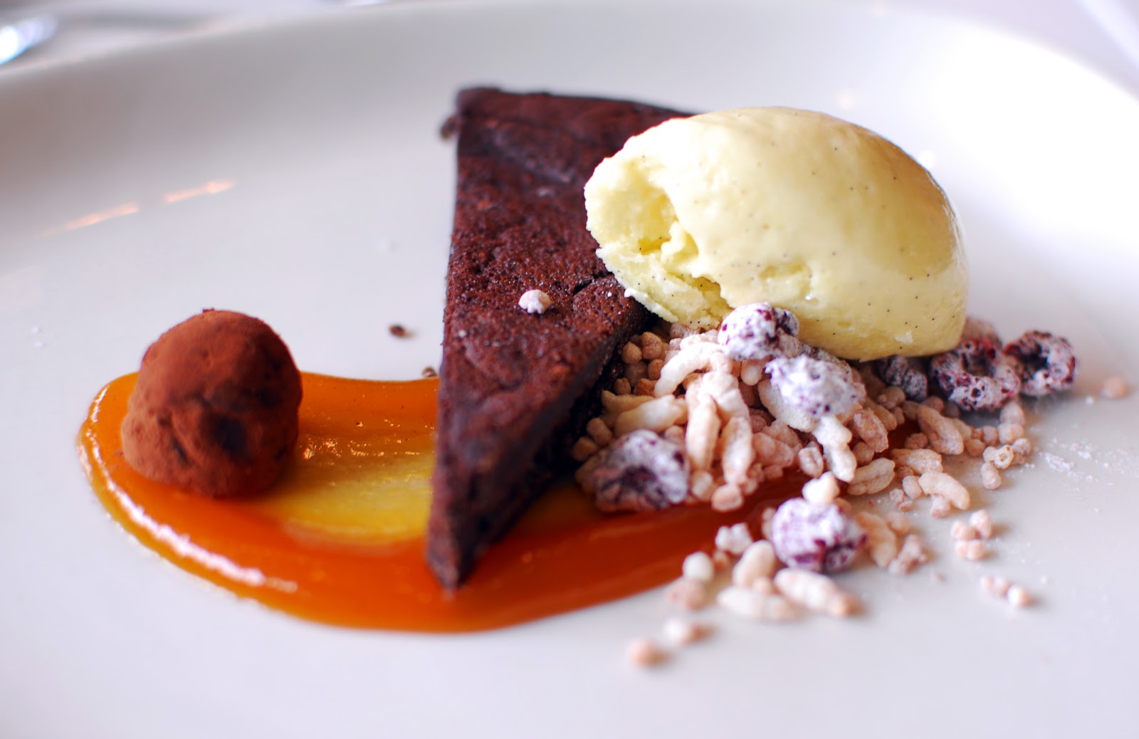 Finally, they both ended their meal with a little dessert. Brandy chose the Affogato, which was simple, perfect, and satisfying. "I only discovered the joys of an affogato a few years ago," said Brandy, "but they have become one of my favorite things. There is nothing quite as pleasing as pouring a dark, rich espresso over a bowl of ice cream." Bucatini had picked the Panna Cotta, which came with a salted caramel sauce and fresh berries. They giggled with delight at the jiggly little sweet, which was dotted with a galaxy of vanilla beans. The panna cotta it self was extremely light, as if it had been made with whipped cream, and had a very pronounced coffee flavor. Bucatini especially liked that the caramel sauce contained small bits of sea salt for a little bit of crunch and an extra burst of flavor.