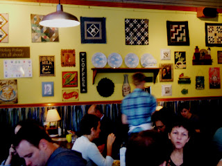 This intriguing figure, it turned out, went by the name of Bucatini Bianco. Brandy and Bucatini wandered up and down the festival for an hour or so, chatting about their individual adventurous lives until Brandy had an idea. "Say," she said, "Would you like to grab a bit of brunch with me? There's a lovely Italian restaurant up in Andersonville I've been wanting to sample and I think you might enjoy it." Bucatini agreed with a short nod and the two headed off with their arms full of various treasures from the market.Bar Roma in Andersonville was their destination, and they arrived to find a warm and rustic feeling U shaped space, laden with brick, aged woods, and antiqued metals. Even though the design utilized dark colors, the windows at the front of both sides of the dining room brought plenty of light into the space, making it feel more open and breezy.