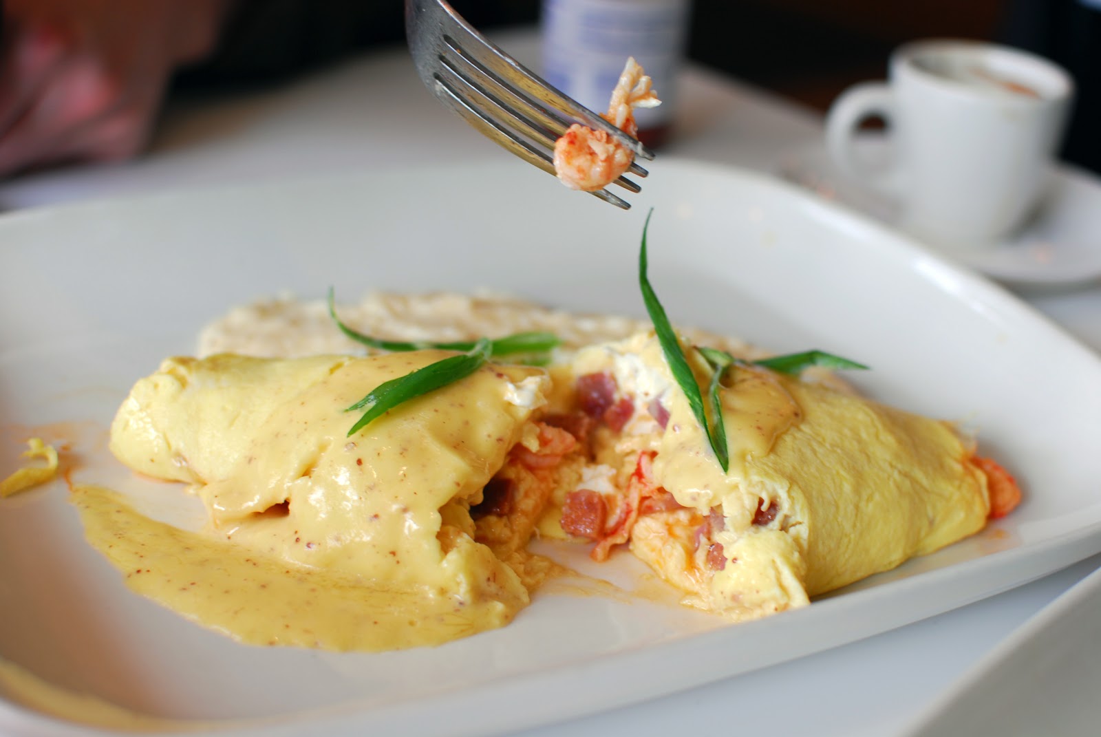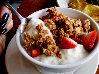 Brandy, never able to resist a plate full of carbs for breakfast, ordered the Rigatoni alla Carbonara. The rough cracked black pepper that was sprinkled across the plate meant that every bite had a thrilling sense of danger to it that Brandy rather enjoyed. The pasta had been cooked well, but Brandy found herself thinking that she preferred the more traditional spaghetti to the rigatoni, if only because the little tubes didn't hold onto the sauce or the cheese as well as she would have liked. The bacon in the dish lent a good amount of flavor, but didn't overwhelm everything else.