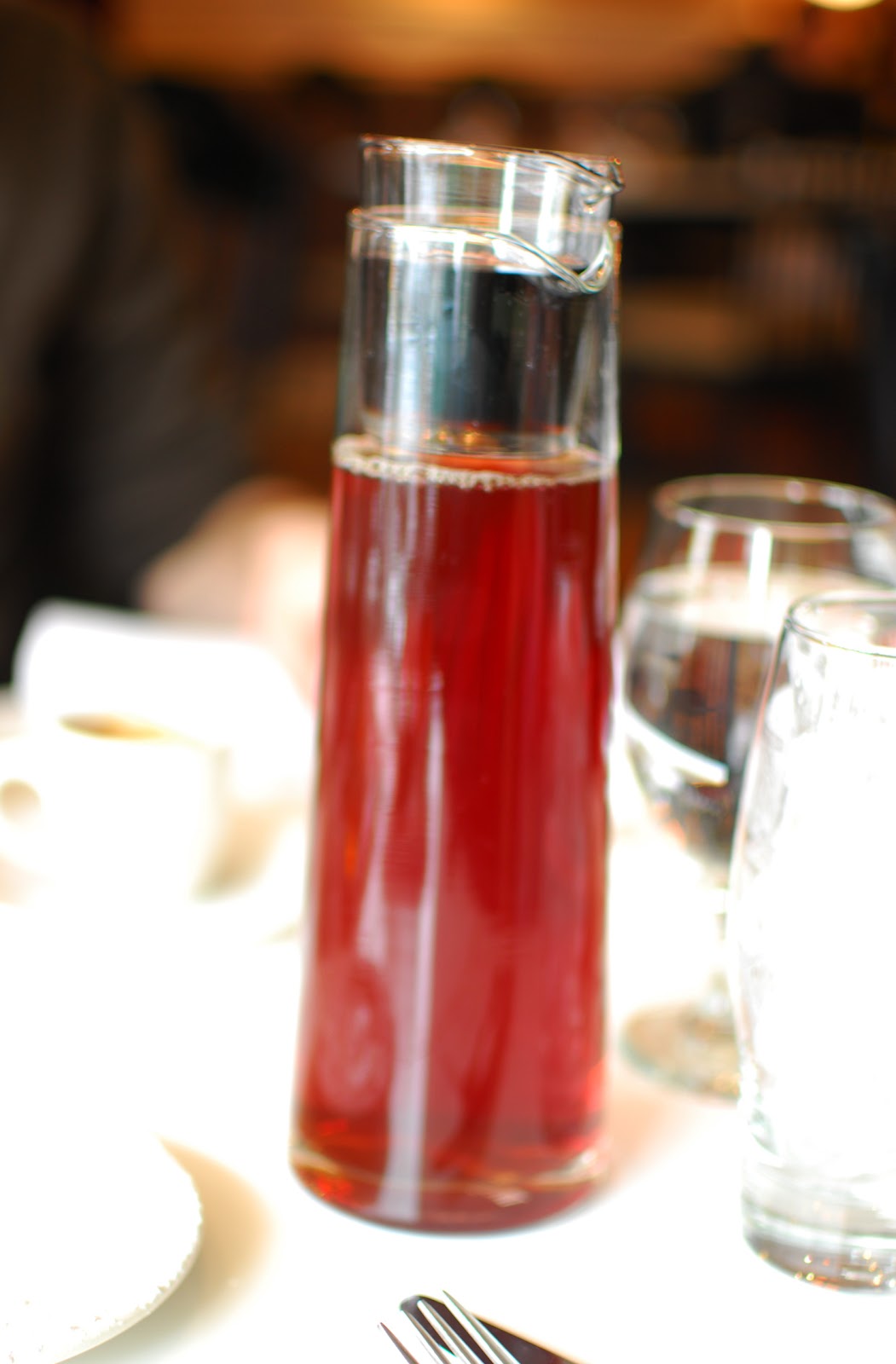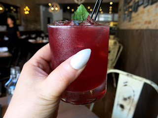 Brandy began her meal with a Pomegranate Basil Smash, a delightfully sweet, slightly tart, and herbaceous drink that tasted like a summer day spent sitting in the middle of a garden. Bucatini went with a simple belini, which was light, crisp, and fresh tasting.