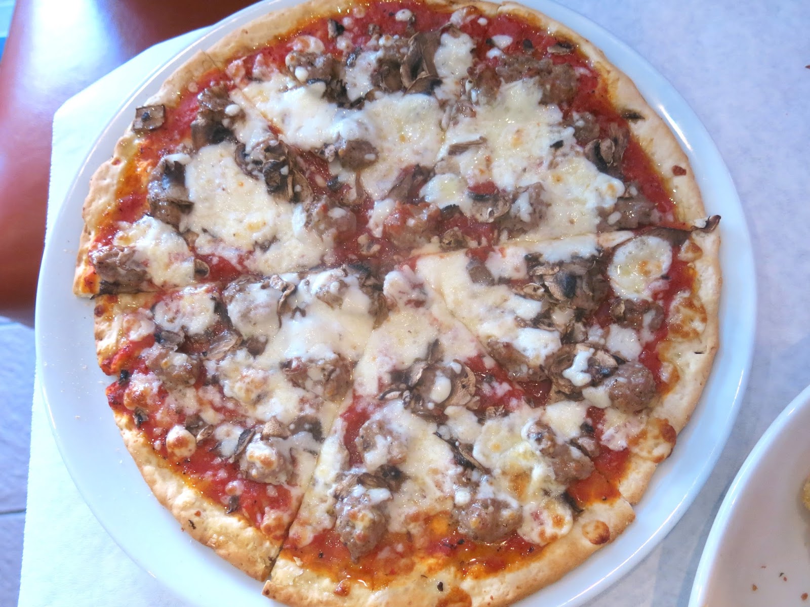 Hawk decided to go with one of the signature pies as his entree, choosing the Sausage and Mushroom. The crust was cracker thin, but sturdy enough to not buckle under the weight of the toppings. The sausage had a good spice to it, while the tomato sauce had a slight sweetness, which Hawk very much enjoyed. "Of course, if we are supposed to be pretending to be in New York, I'd better fold this slice before I eat it," Hawk commented, jokingly, but Brandy suddenly got very serious. "Don't you dare," she hissed, "I will not have our pizza eating habits judged by the other Chicagoians in here."