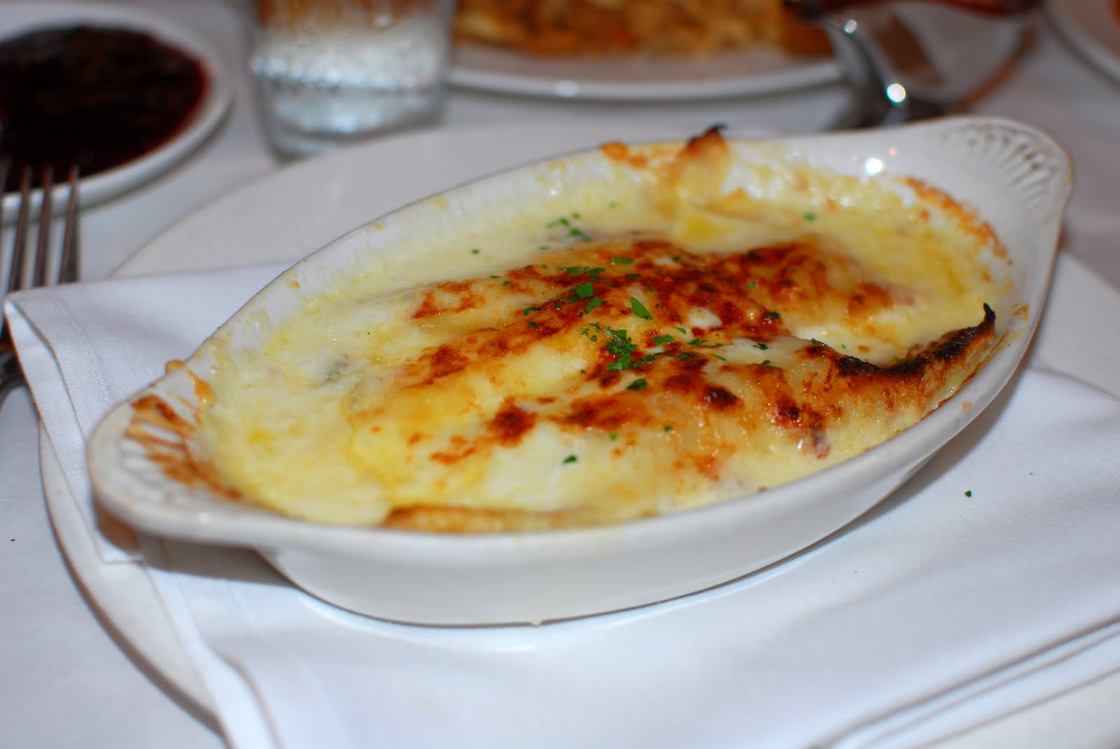 Now with a taste for onion soup, Brandy placed an order for the classic French bistro dish to start off her meal. This version was spot on with a generous amount of melty cheese on top and a rich, complex soup underneath. Brandy especially liked that this version incorporated several different types of onions, which added to the deep flavor.Hawk, satisfied that he had accomplished his goal, settled in for the simple Omelette Au Fromage with ham. The texture of the eggs was lovely, not being too dense or fluffy, and the proportion of cheese and salty ham was just right. Hawk also appreciated that his side dish was a nice light salad, where as if it had been the more often seen home fries or house potatoes, it would have taken away from the classic bistro feel.
