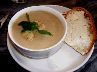 Next, Brandy moved on to a cup of Thyme Mushroom Soup which came served with a healthy chunk of artisan bread. The soup had nice mushroom flavor matched with a creamy richness, and the croutons on the top lent a wonderful bit of crunch to the dish. The bread was thick and hearty and perfect for dipping.