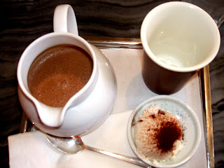Brandy started off with Bittersweet's house Hot Chocolate, a frothy and cinnamon spiked version of the cold weather classic. Served on a dainty tea tray, one is presented with a pot of rich, dark hot chocolate and a generous dollop of nutmeg scented whipped cream. The beverage on its own is spiced and warming beyond belief, and the whipped cream only serves to guild the lily. Brandy absolutely adored the experience of pouring her own portion of chocolate and watching the thick cream slowly disappear within it.