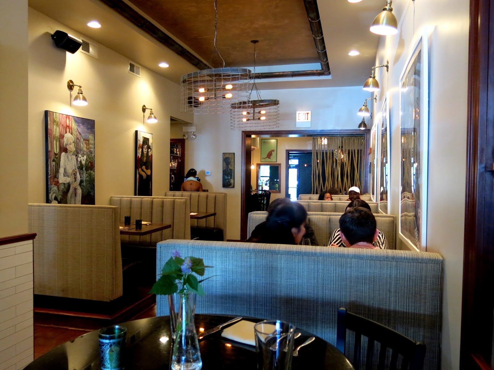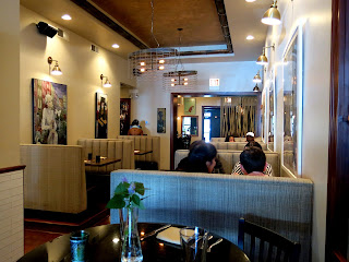 Showing her friends into the sun filled venue, Brandy was delighted to find that even a hip and groovy restaurant like Rhyme or Reason was prepared to help out with baby Bambino, providing him a high chair, a special water cup or his own, and a plate of avocado so that he could munch right along with his parents. Once settled in, the group was able to enjoy the beautiful pops of bright colors all around the room, which stood out against the base of cool grey tones. The retro vibe was certainly there (present most definitely in the music), but it wasn't so intrusive so as to make the place seem like a corny theme restaurant.The group began with a round of drinks. Bambi went for the house mimosa, made with white grapefruit juice and Segura Vidas Cava, which gave the drink a pleasant bitterness. Bear went with the Bro-Mosa, a more manly version of the drink, made with Triple Sec, vodka, and a citrus scented pale ale along with a splash of orange juice, creating a rather floral flavor along with the zingy citrus. Brandy picked the Let's Get It On, a fruity and tropical delight with mango flavored vodka, pineapple, passion fruit, coconut, and lime juice and a bit of reisling for an extra touch of fruitiness.