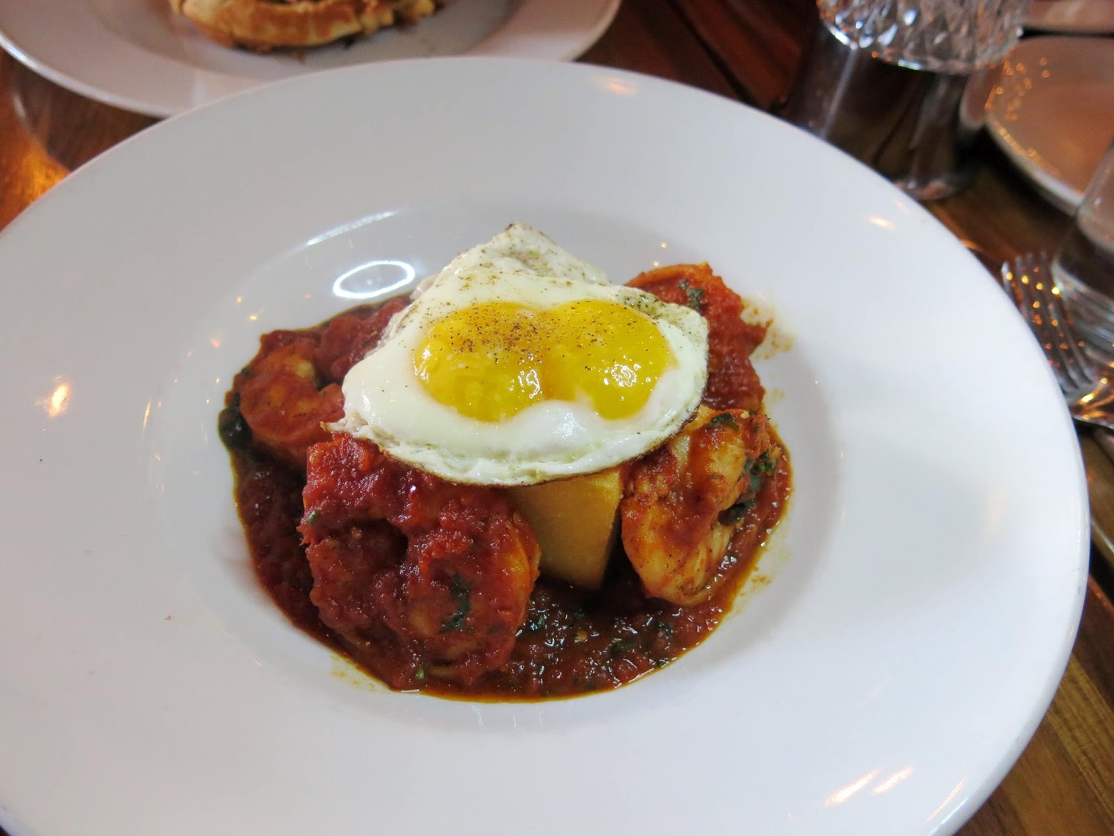 Brandy, of course, went for the current Hangover Special, the Mac Daddy. This monument to gastronomy was comprised of macaroni and cheese tossed with roasted corn, blistered cherry tomatoes, and hunks of bacon lardon, then topped with a panko breaded chicken breast and two sunny side up eggs. After one bite, Brandy looked up at her companions and proclaimed, "None of you are getting any of this." Between the sweetness of the veggies, the richness of the cheese sauce and bacon, and the crunch of the chicken, Brandy could not imagine a more perfect mix of textures and flavors. Luckily for her, everyone else was also jealously guarding their entrees. "They don't know what they're missing," she silently giggled to herself as she shoveled more pasta into her mouth.