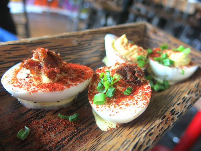 To start them off, the group toasted each other with a plate of Deviled Eggs. Bear and Brandy enjoyed the regular version, which was adorned with a dollop of espresso scented bacon jam. The eggs had a nice mustardy flavor, but the hint of espresso really made them quite unique. Bambi and Bambino sampled their eggs without the bacon jam and still found them to be quite tasty and baring the unique espresso flavor.